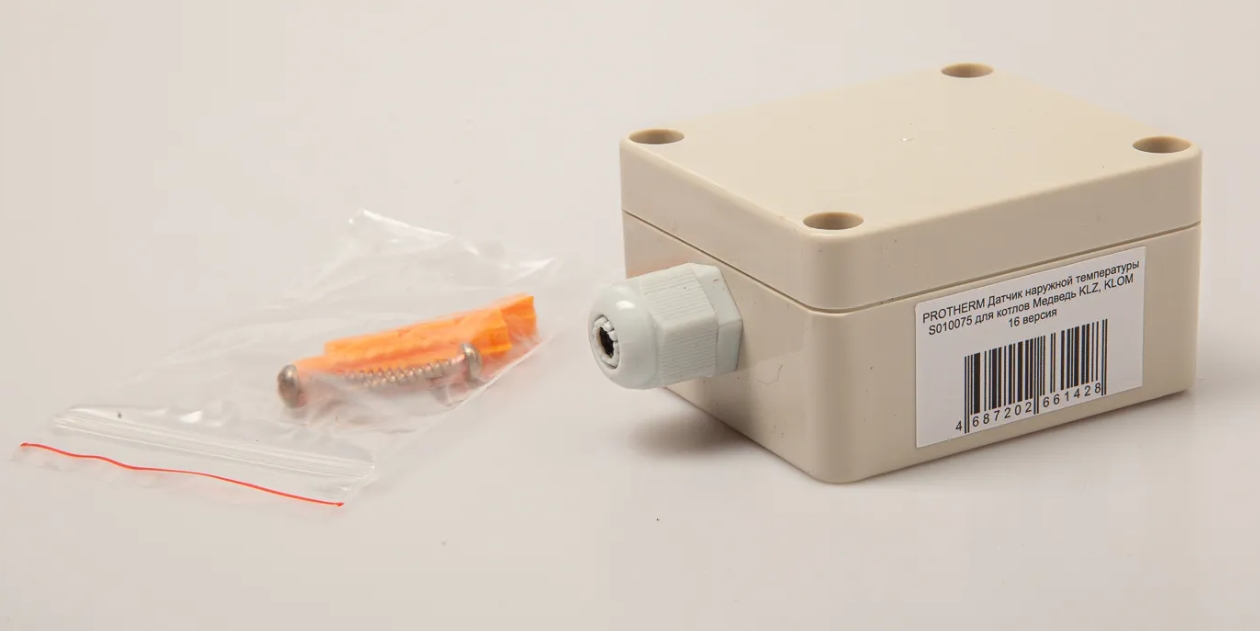 Датчик наружной температуры для котла Protherm предназначен для измерения температуры снаружи, по которой котёл поддерживает температуру на подаче (температура задаваемая электронной платой в зависимости от температуры на улицы и кривой эквитермического режима контура отопления).
